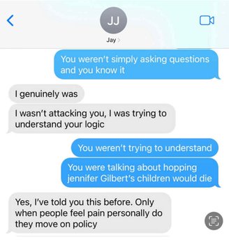 The scandal broke on October 3 when Jones, who was then in the House of Delegates, texted another delegate expressing rage that some Republicans had recently been eulogizing a moderate Democrat who had often crossed the aisle to reach bipartisan deals. Not only did Jones express a desire for “two bullets” for then-House Speaker Todd Gilbert (R-Shenandoah) [thus killing Gilbert but leaving Hitler and Cambodian dictator Pol Pot alive], but he also fantasized about gun deaths in their mother’s arms for Gilbert’s two sons, ages two and five at the time, children Jones knew personally through their connections in the 100-member House of Delegates.
