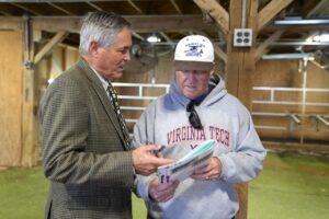 High-quality cattle and Hokie hospitality draw loyal alumni and repeat buyers year after year. Dennis Pearson ’83, a graduate of the College of Agriculture and Life Sciences and owner of Soldiers’ Hill Angus in Warrenton, has been attending the sale for more than two decades.