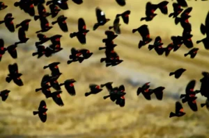 If you closed your eyes, you heard the sound of the beach, ebb and flow, as wave after wave surged onto the shore of tall grass moving with the wingbeats of so many individual birds given over to the will of the whole.