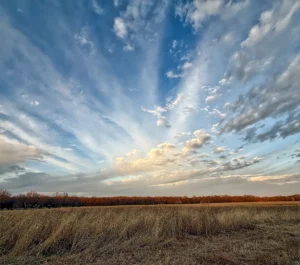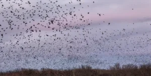 For an hour before they finally converged on our field in view, we saw barely visible in the distance “rivers” of birds stretching literally miles across the sunset skies, just above the tree line.