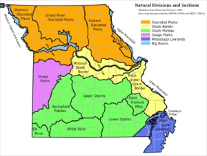 So just when I think I know what the lay of the land (in my county of residence) is like, I am transported not so many miles north of the city of Columbia (in the yellow Ozark border counties) into the (orange) land left behind by the last southern advance of the final period of glaciation before the current era.