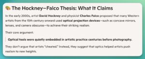 Enter the Camera Obscura, then the Camera Lucida. The needs of artists and scientists over the years have found solutions with the use of optical tools that allow for lines on the page to “line up” with those in a real-life eye-view of a village, flower structure or nebula (John Herschel and others.)